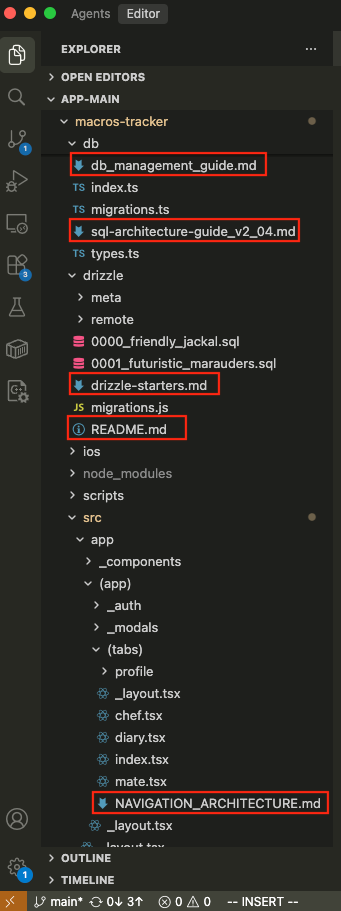 Look at the repo I’m currently working on. It has almost more markdown files than actual code. In the image you can see db_management_guide.md, sql-architecture-guide.md, NAVIGATION_ARCHITECTURE.md. README.md. There are many more of those throughout the repo, and every single one started as a total brainstorm-guided thing of what I need and wanted.